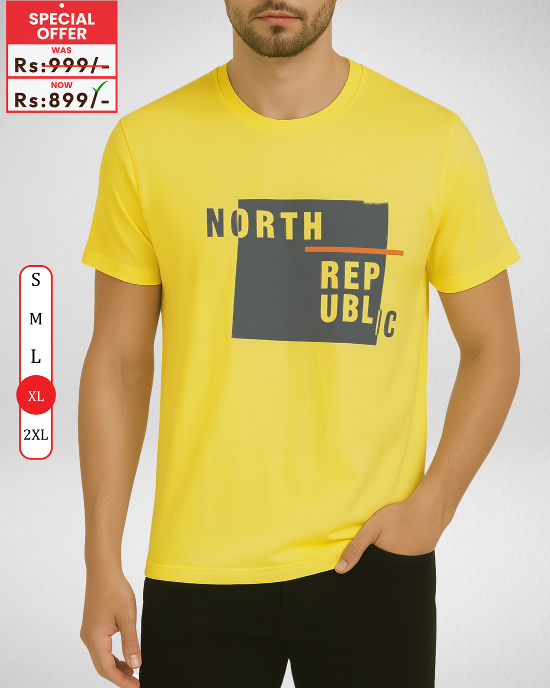 Premium Yellow Printed T-Shirt/Tee for Men – Cotton Jersey Fabric (Code 4046)
