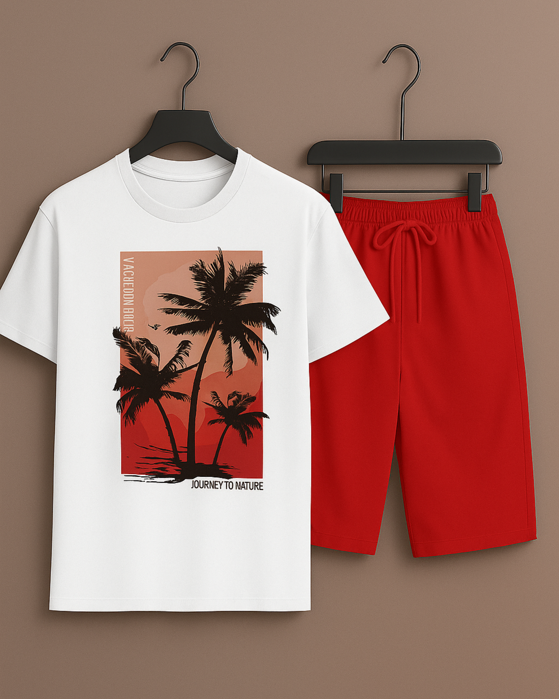 White T-Shirt Printed with Red Shorts– Comfortable Wear (3367) Stay fresh and stylish all summer...