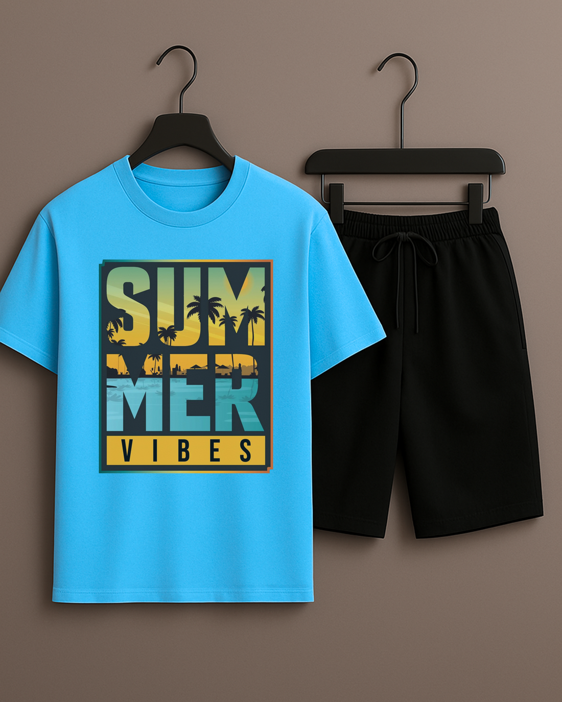 Sky Blue T-Shirt Printed with Black Shorts– Comfortable Wear (3369) Stay fresh and stylish all...