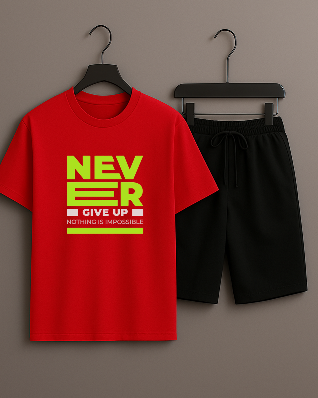 Red T-Shirt Printed with Black Shorts– Comfortable Wear (Code 3372)