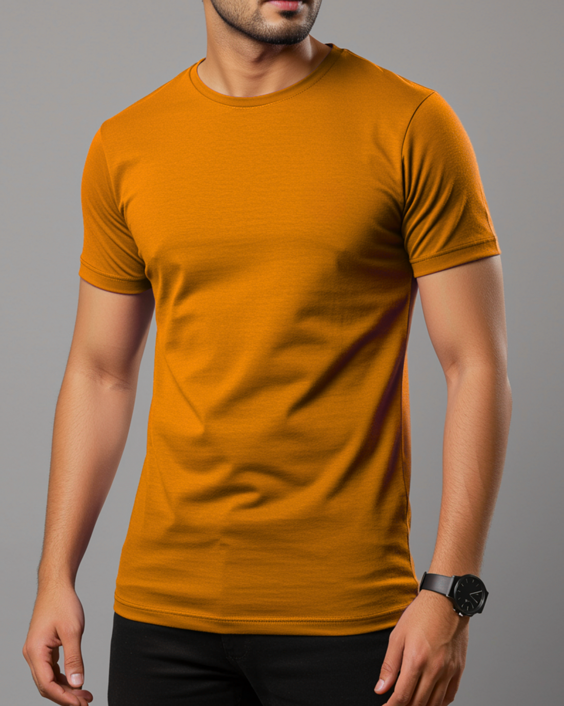 Mustard Men’s Basic Tee – Jersey Fabric, Classic Fit, Everyday Comfort (Code 3258)