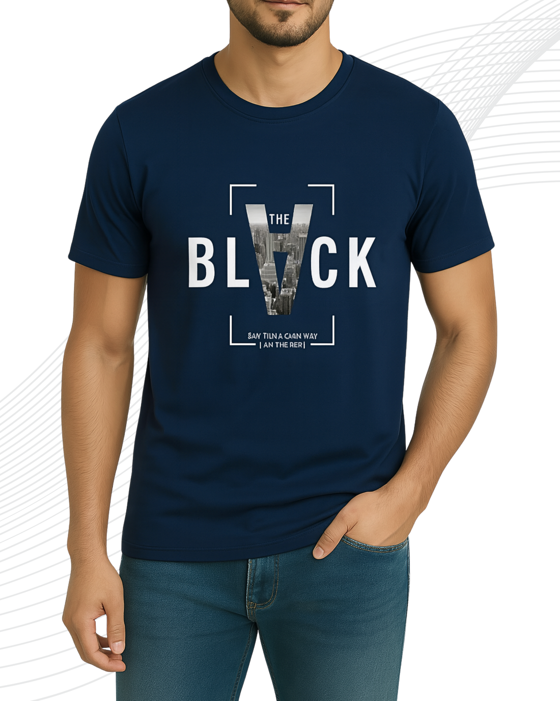 Premium Navy Blue Printed T-Shirt/Tee for Men – Cotton Jersey Fabric (Code 3430)