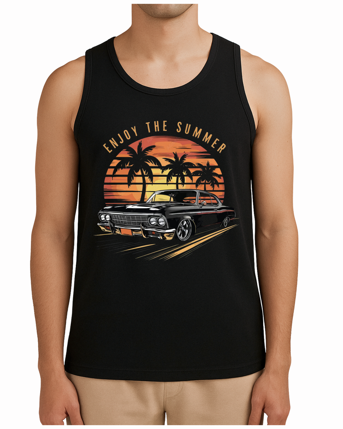 Co-Order Set White Tanktop Printed Tree Summer Vibes with Black Shorts– Comfortable Wear (3355) Stay...