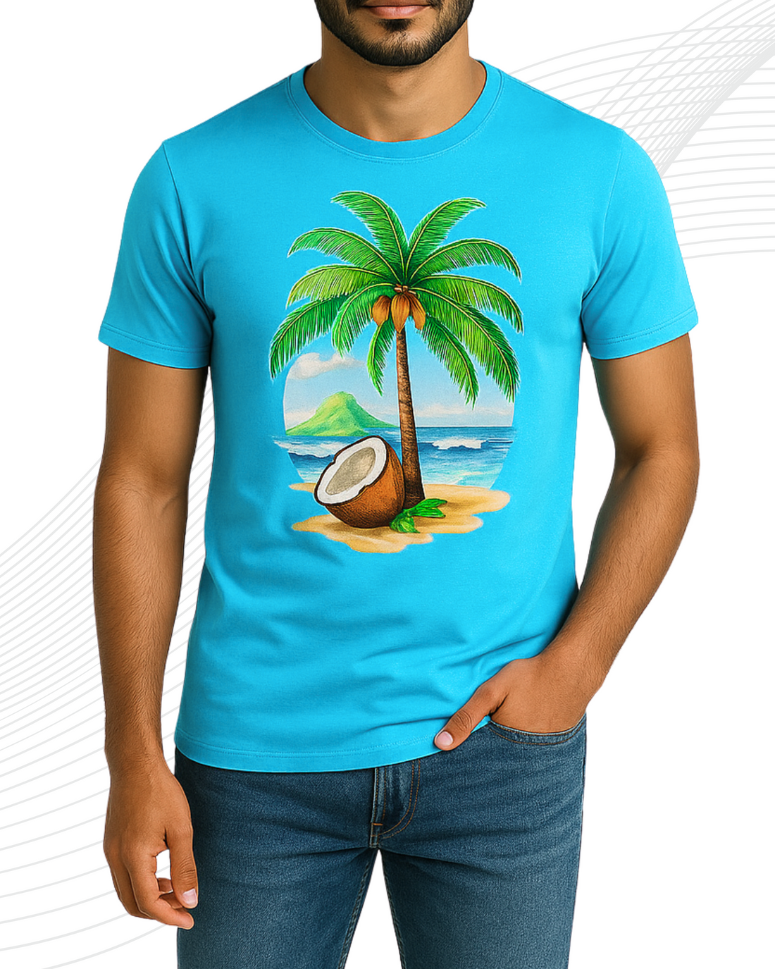 Premium Beach Plam Printed T-Shirt/Tee for Men – Cotton Jersey Fabric (Code 3268)