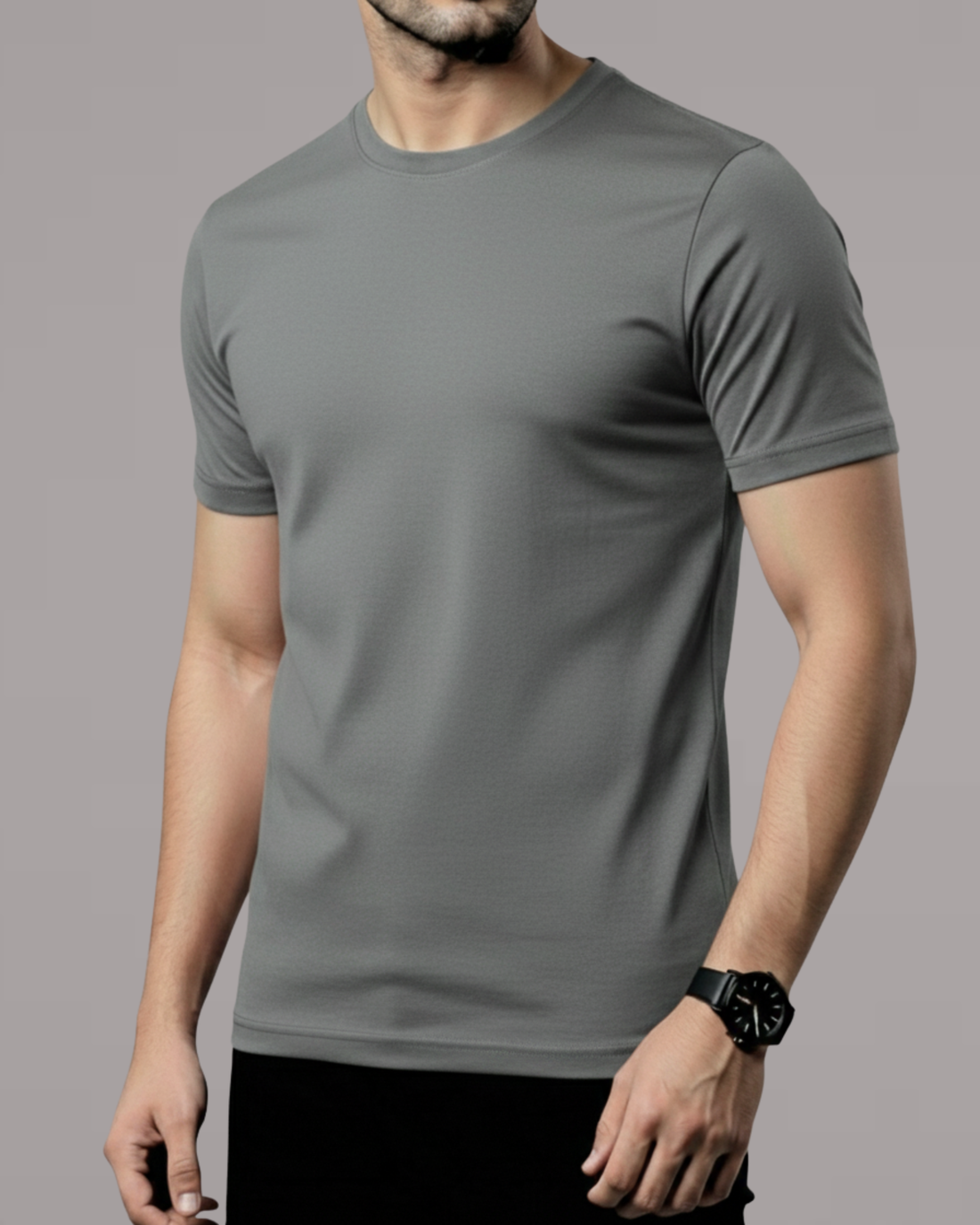 Steel Grey Men’s Basic Tee – Jersey Fabric, Classic Fit, Everyday Comfort (Code 4498)
