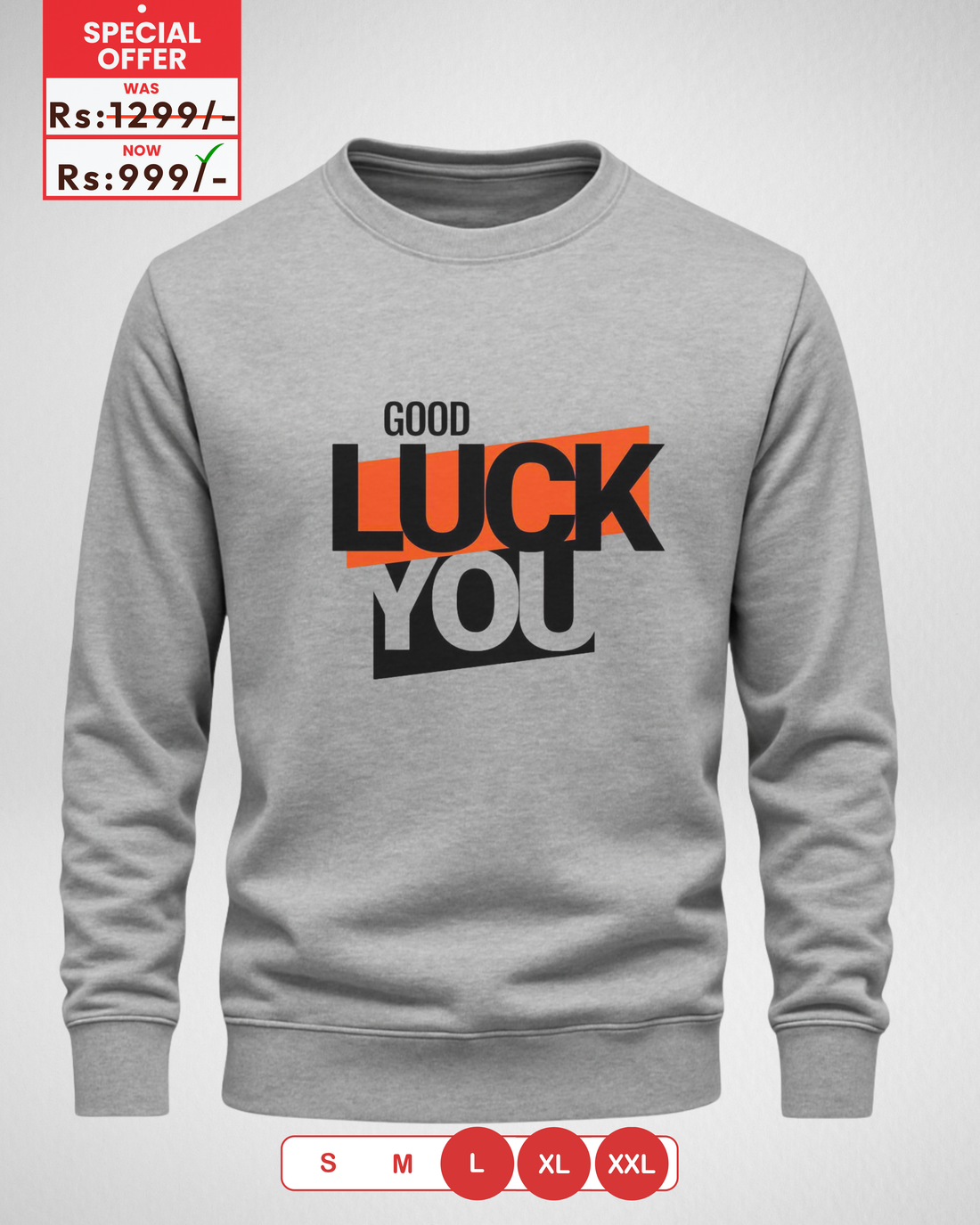 Only Large, XL, 2XL Size – Grey Men's Printed Sweatshirt (Code 4456)
