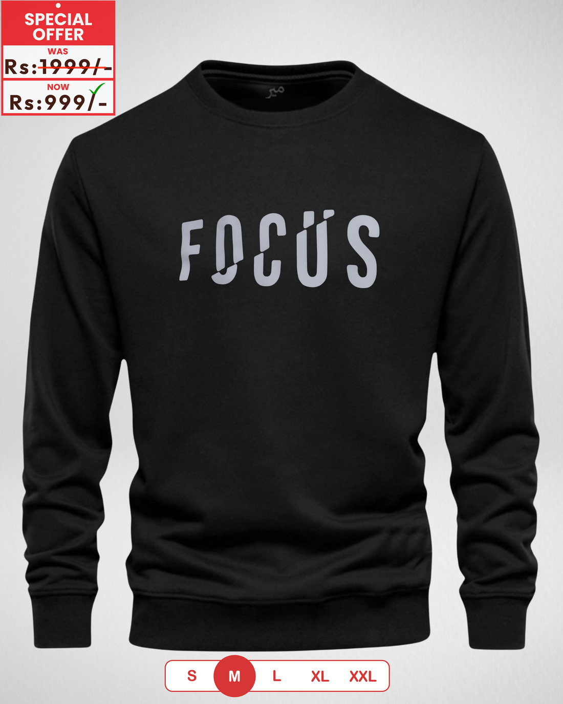 Focus Black Printed Sweatshirt – Warm and Stylish Fleece (Code 4072)