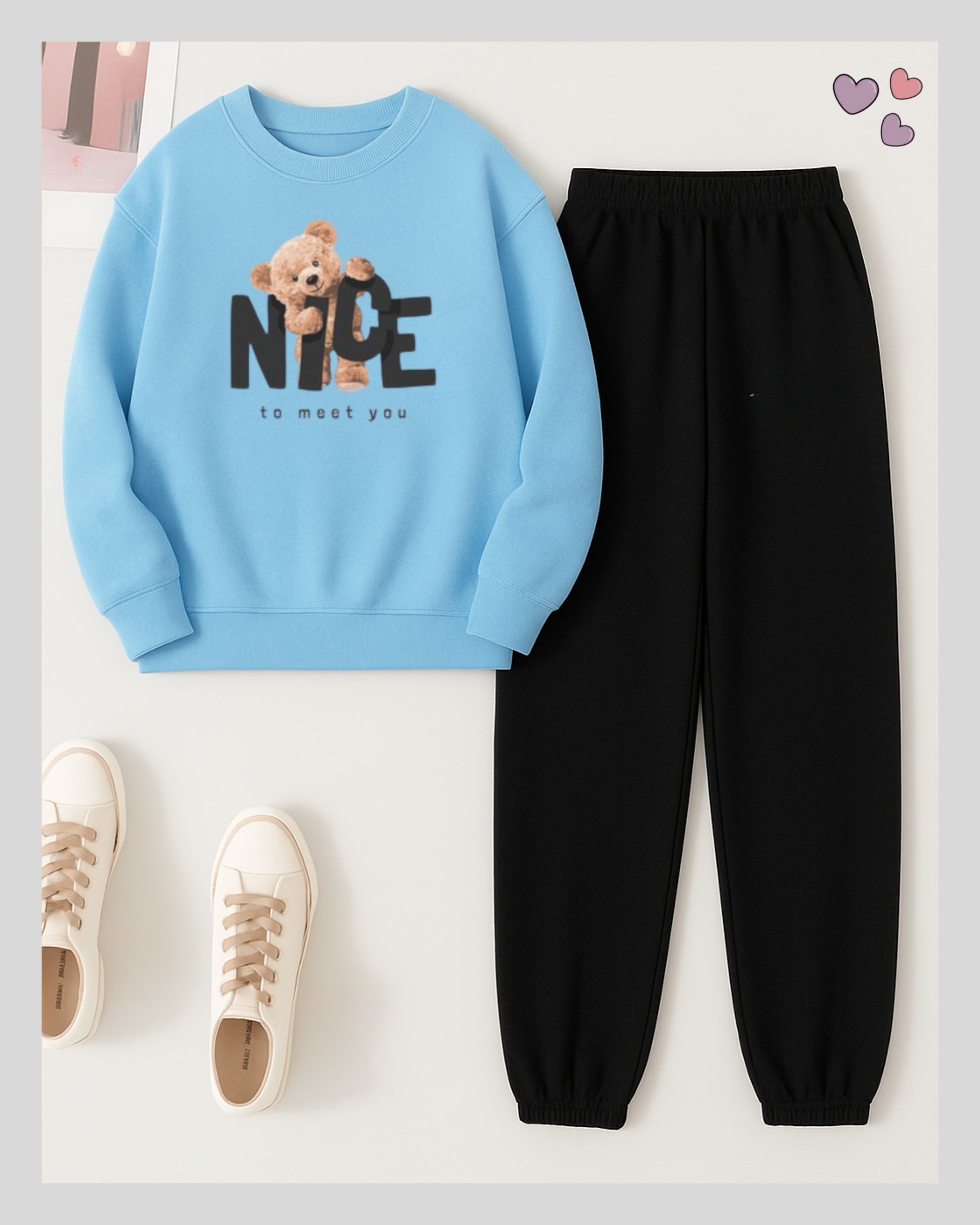 - Color: Sky Blue SweatShirt And Black Trouser.