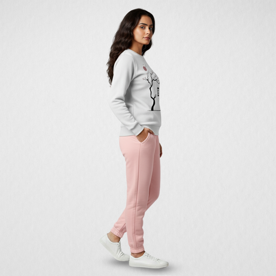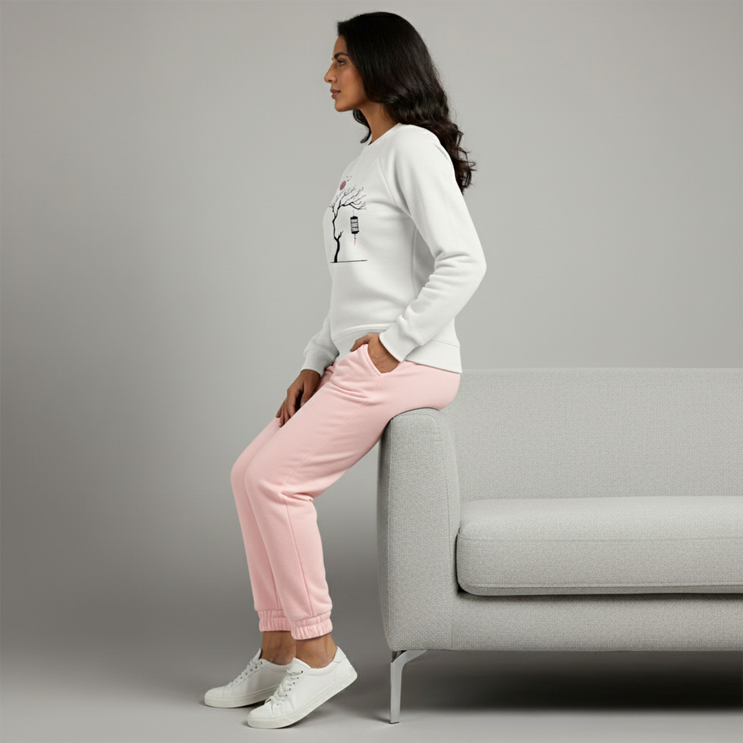 - Color: White SweatShirt And Pink Trouser.