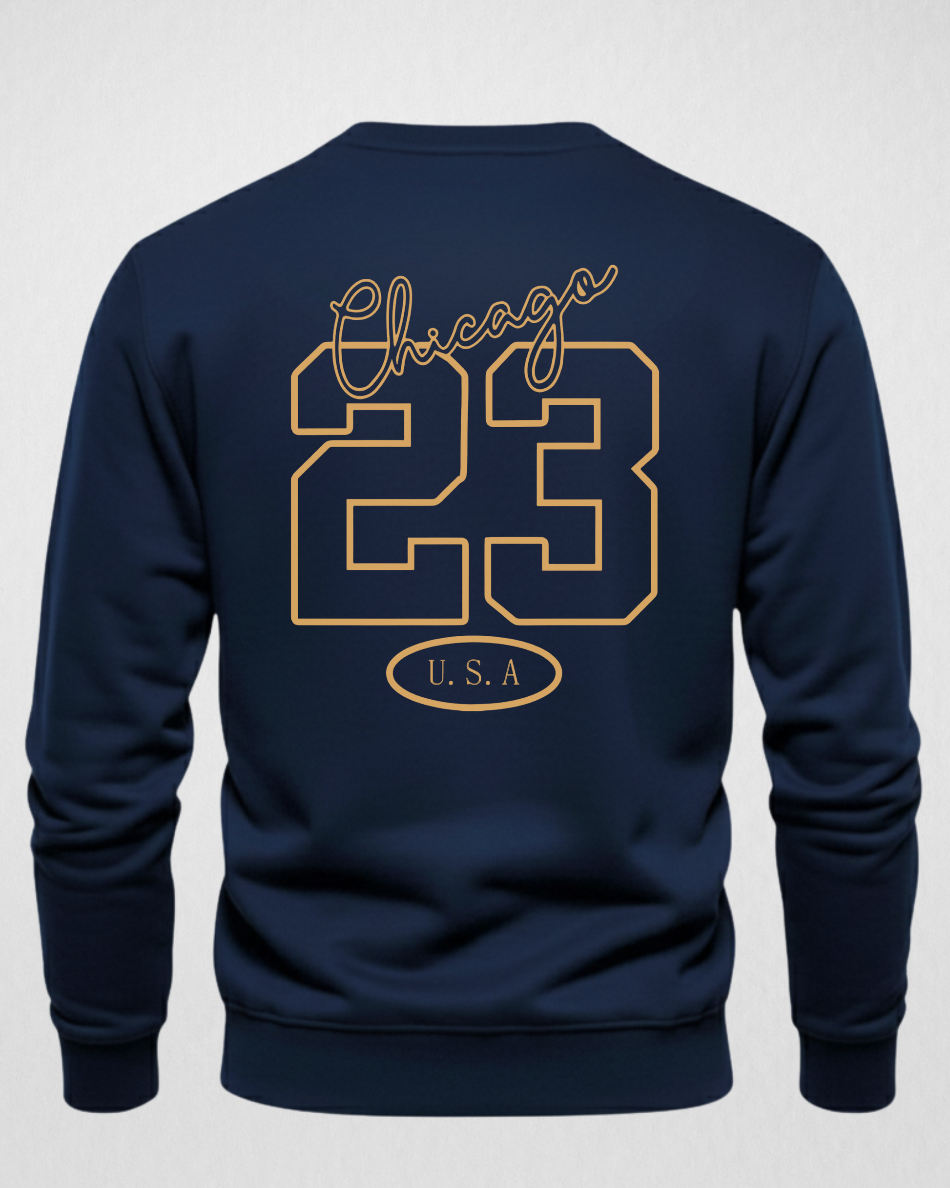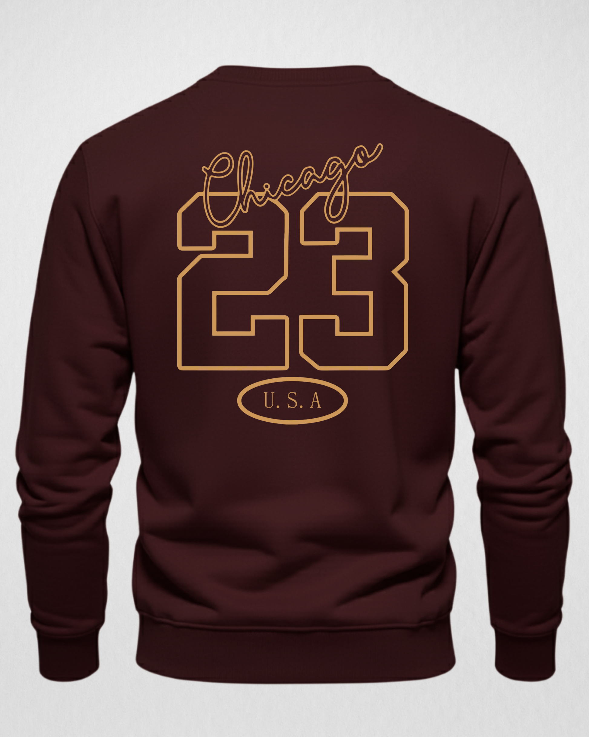 Chicago 23 USA Printed Sweatshirt in Navy Blue, Maroon, Beige/Cream, Bottle Green, Mustard and Sky Blue Colors