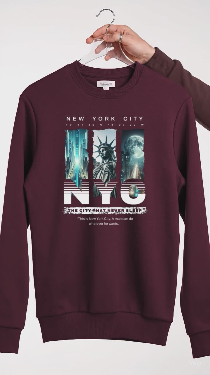 Maroon Men's Printed Sweatshirt – Warm and Stylish Fleece (Code 3456)