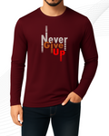 Maroon Printed Men’s Full Sleeves Tee – Jersey Fabric, Classic Fit, Everyday Comfort (3557)