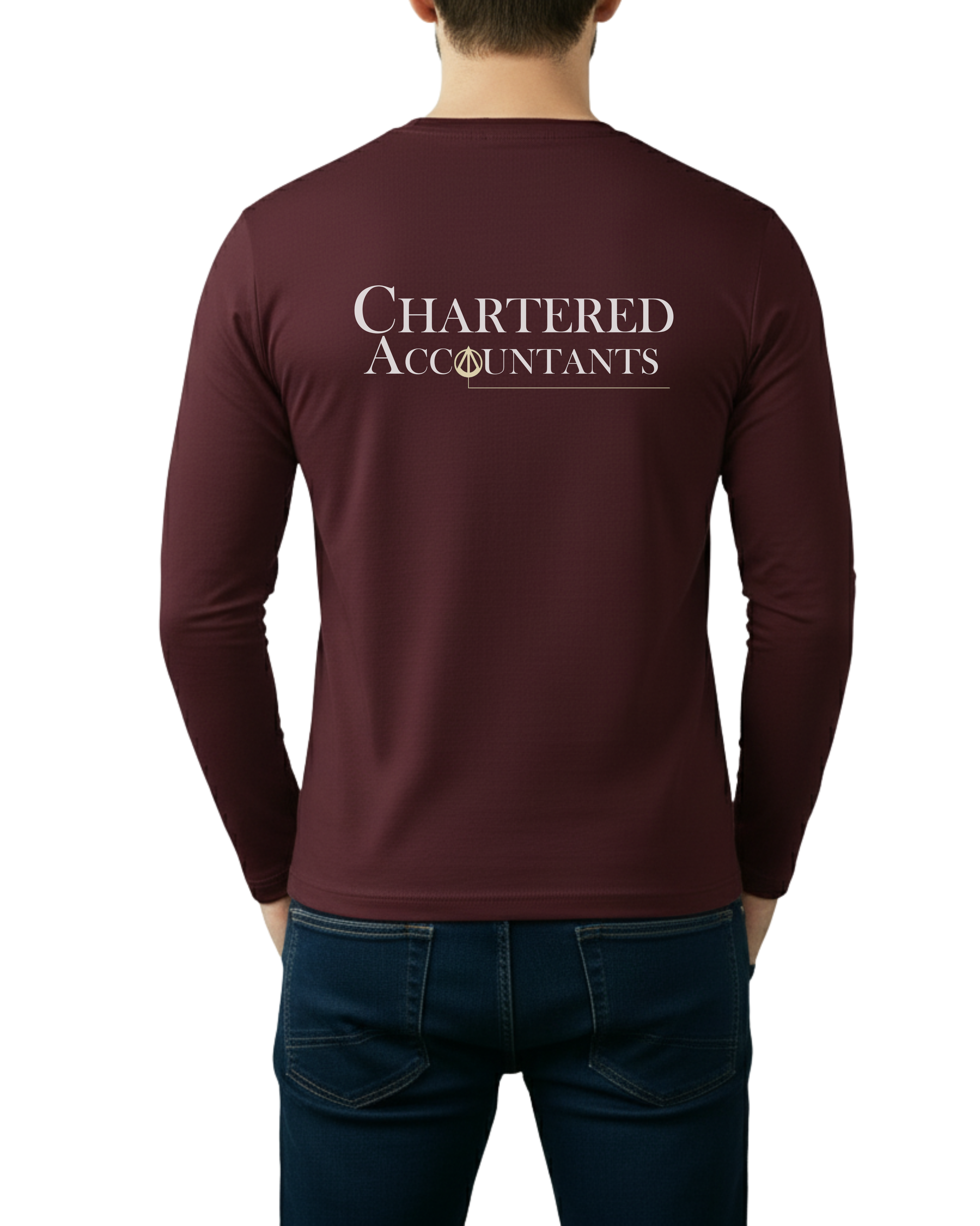 Maroon Printed Men’s Full Sleeves Tee – Jersey Fabric, Classic Fit, Everyday Comfort (Code 4273)