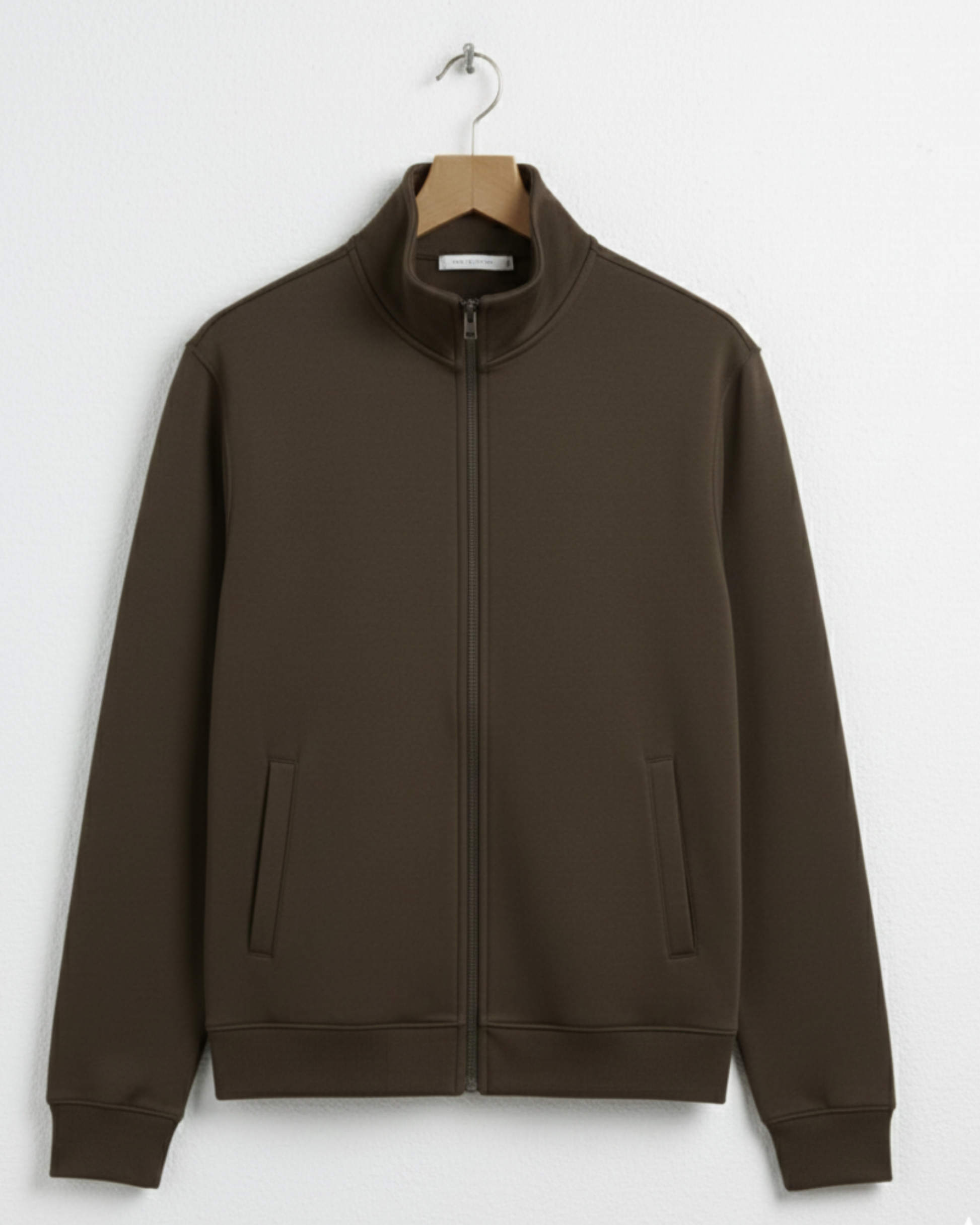 Dark Brown Zip-Up Jacket Soft, breathable fabric, perfect for casual wear or light activity.