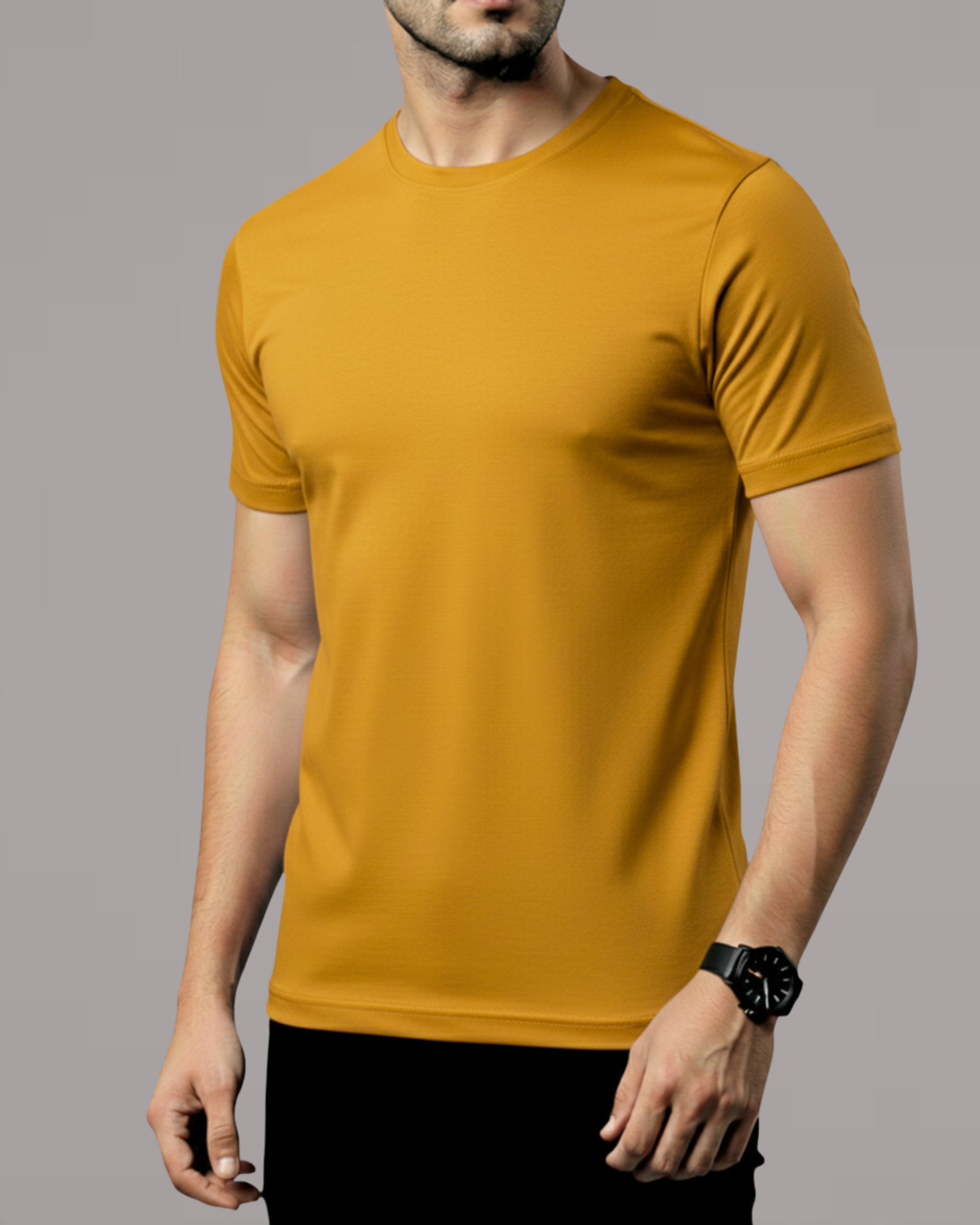 Mustard Men’s Basic Tee – Jersey Fabric, Classic Fit, Everyday Comfort (Code 3258)