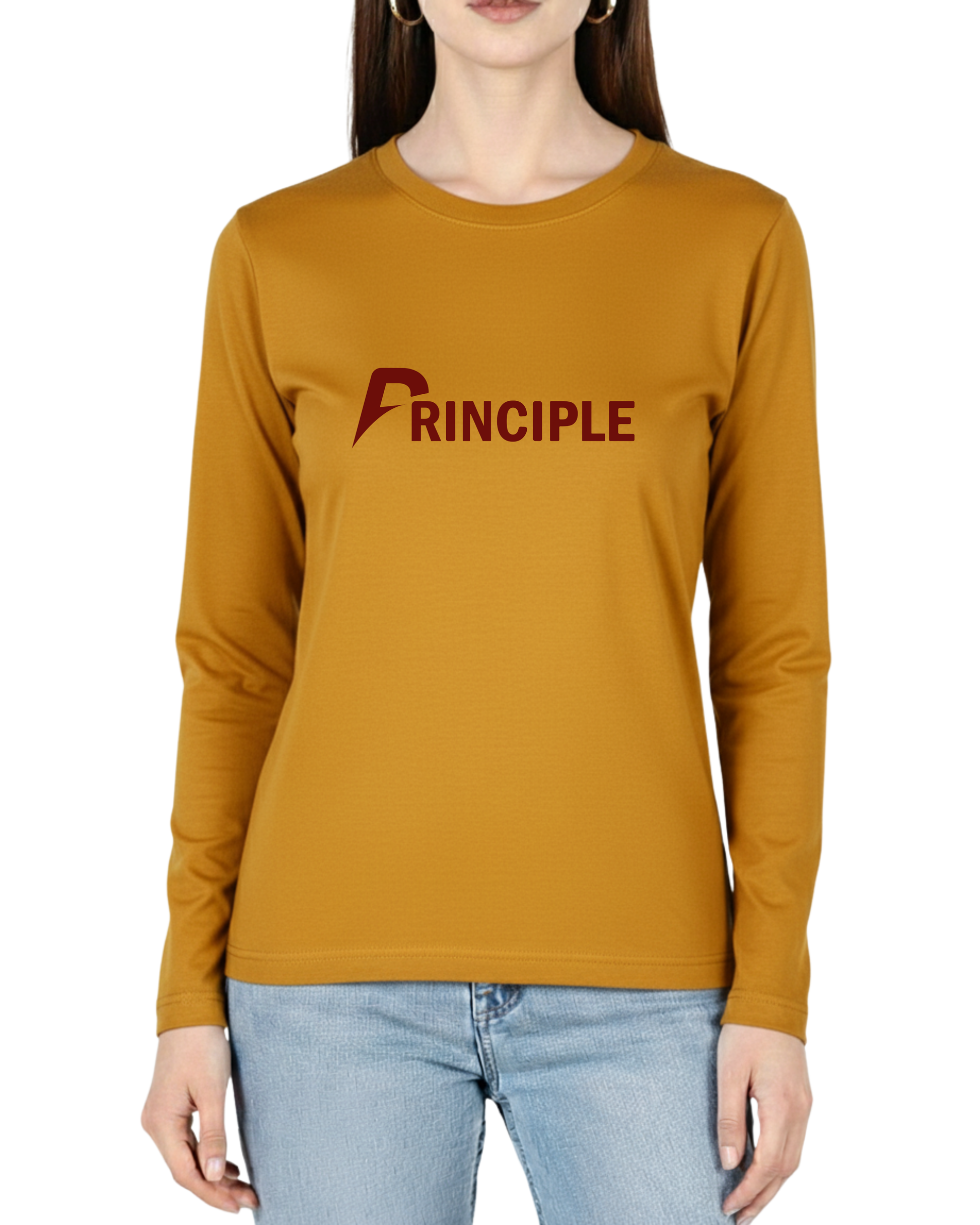 Mustard Printed Full Sleeves Tee – Jersey Fabric, Classic Fit, Everyday Comfort (Code 4335)