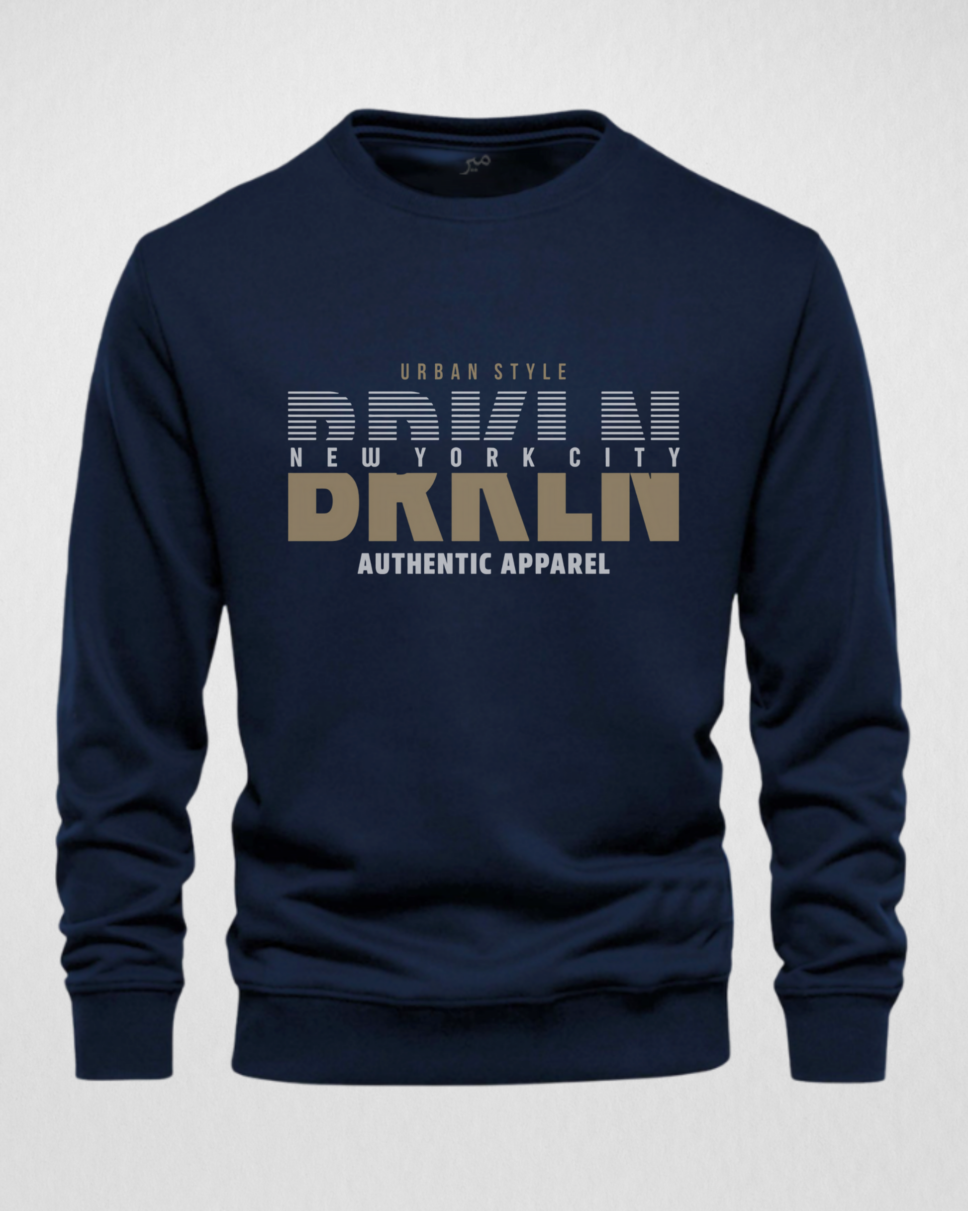 Navy Blue Men's Printed Sweatshirt – Warm and Stylish Fleece (3783)