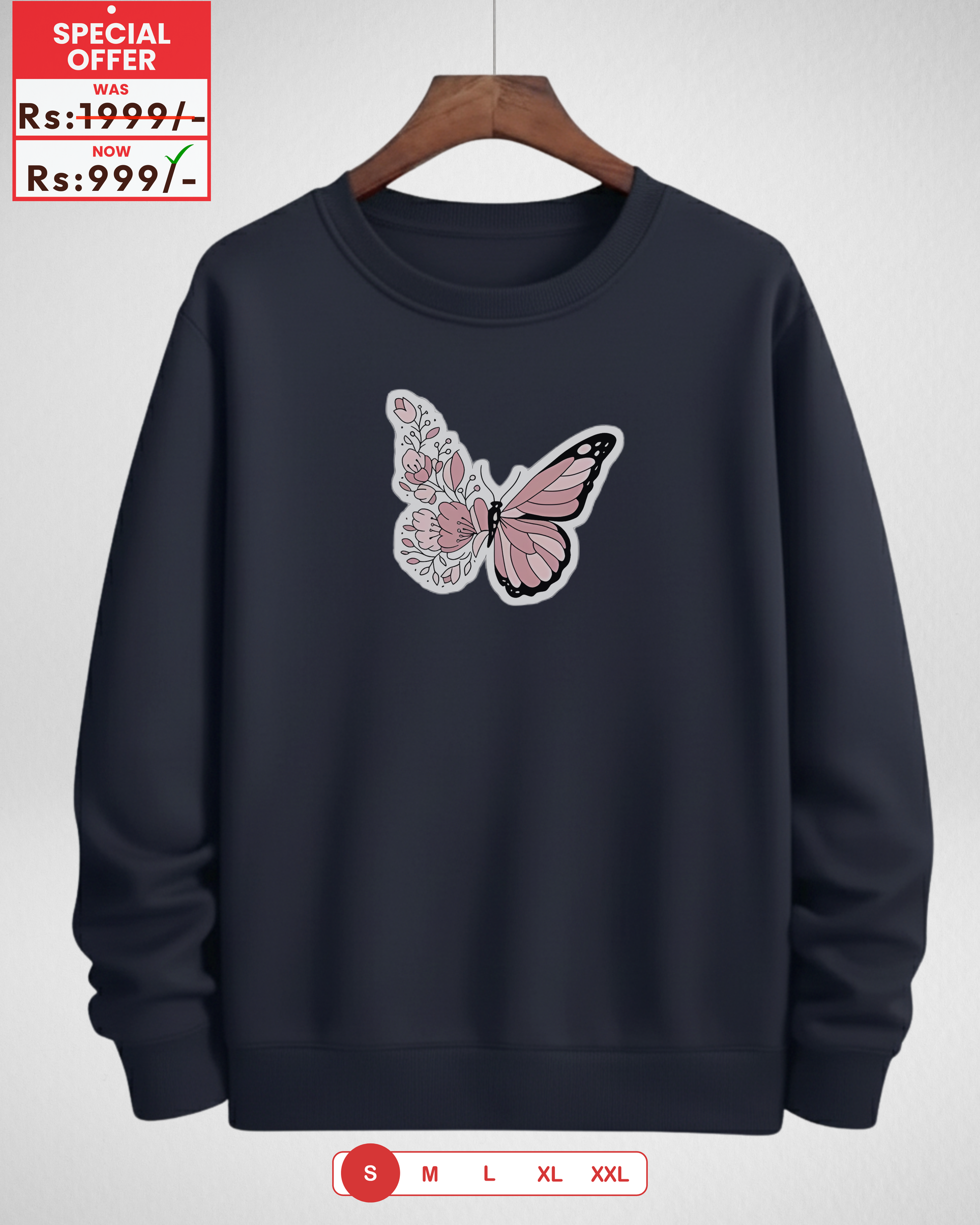 Only Small Size – Navy Blue Printed Sweatshirt – Warm and Stylish Fleece (Code 4236)
