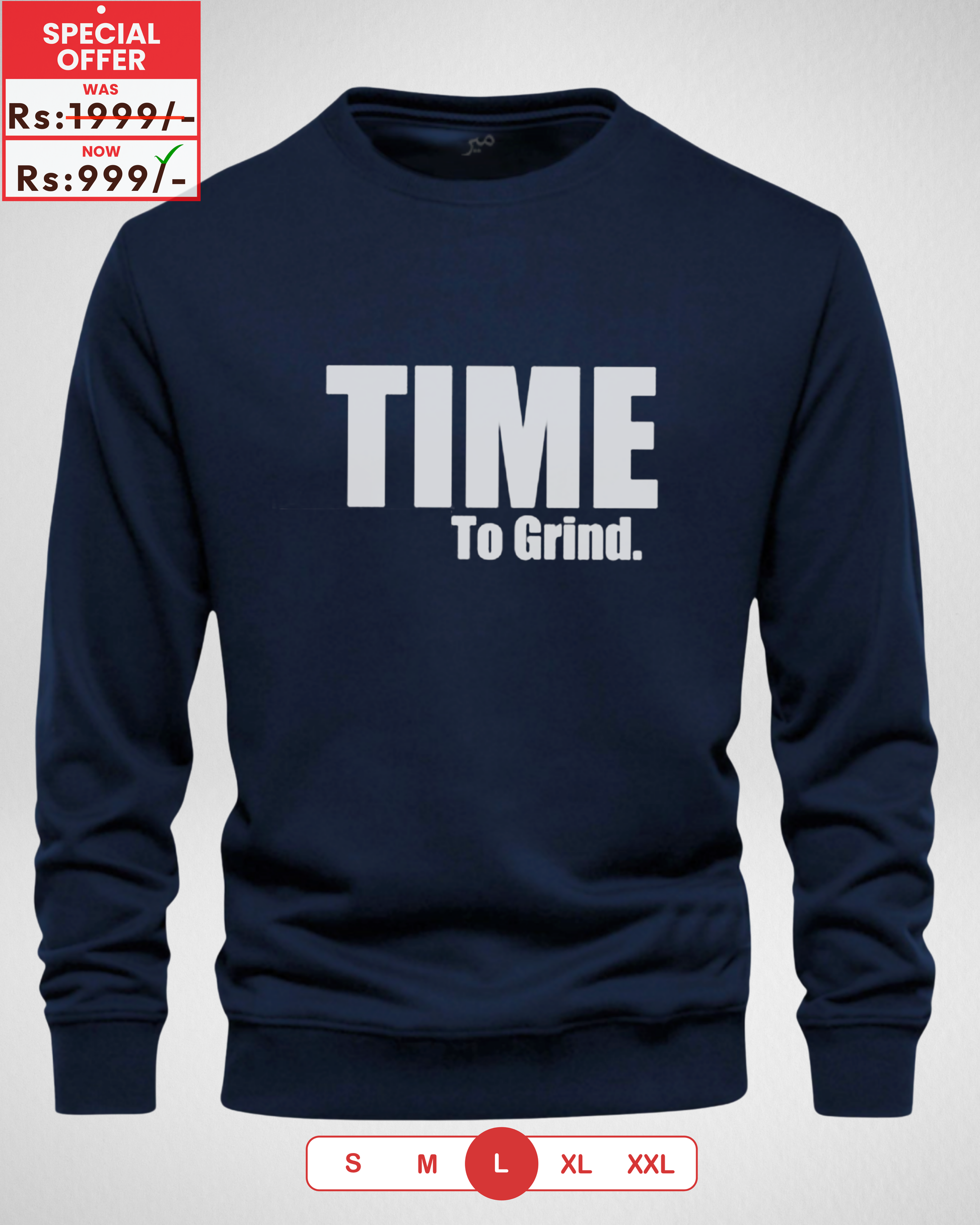 Navy Blue Time to Grind Printed Sweatshirt – Warm and Stylish Fleece (Code 3984)