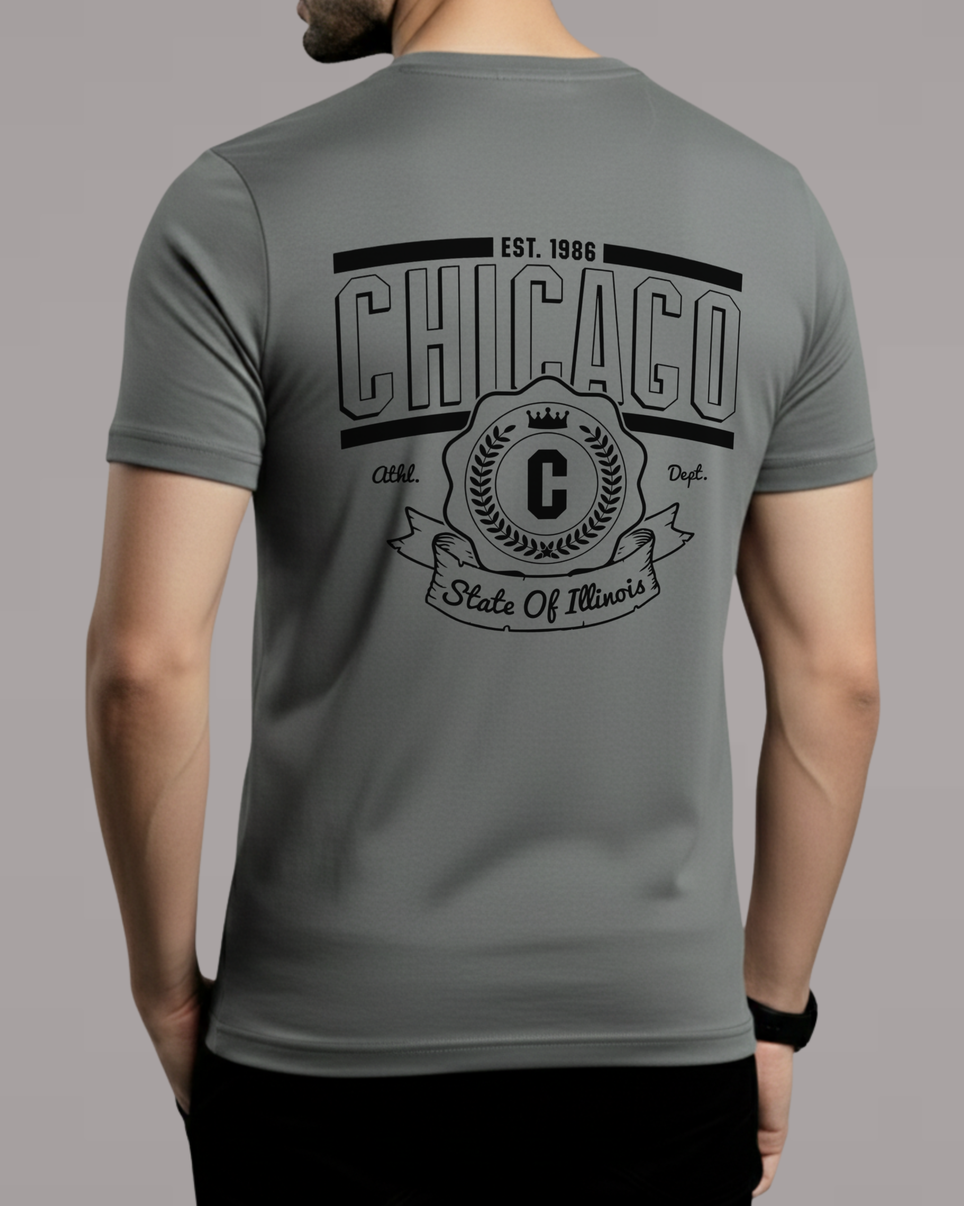 Premium Steel Grey Back Printed T-Shirt/Tee for Men – Cotton Jersey Fabric (Code 4528)