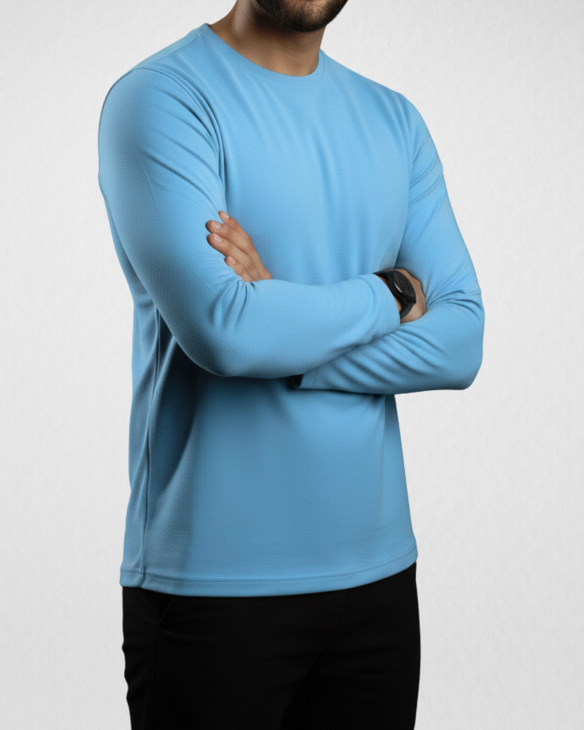 Sky blue Men’s Full Sleeves Tee – Jersey Fabric, Classic Fit, Everyday Comfort (Code 3540)