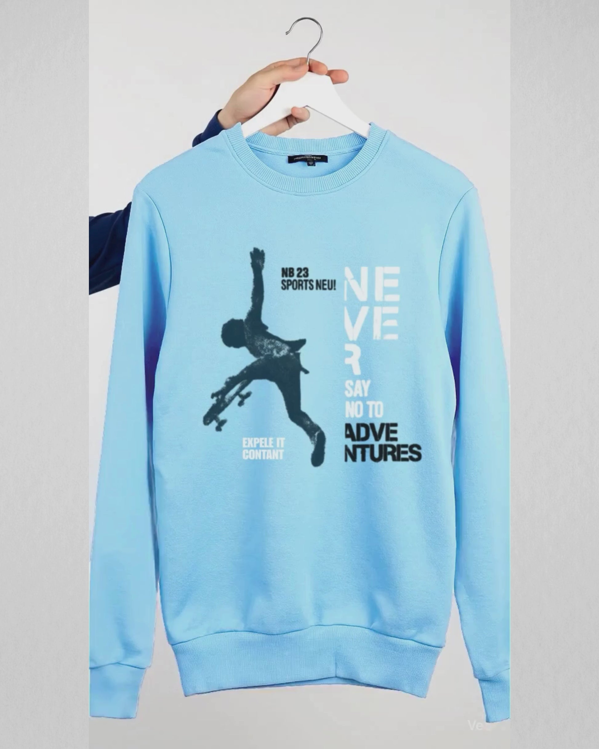 Stay warm and stylish with this Sky Blue men's printed sweatshirt. Made from soft fleece, it is perfect for winter wear and casual fashion. This full-sleeve sweatshirt keeps you cozy, whether at home or outside. The printed design adds a trendy touch, making it great for streetwear, sportswear, or everyday use. Available at an affordable price with cash on delivery in Pakistan. Order now and upgrade your wardrobe!