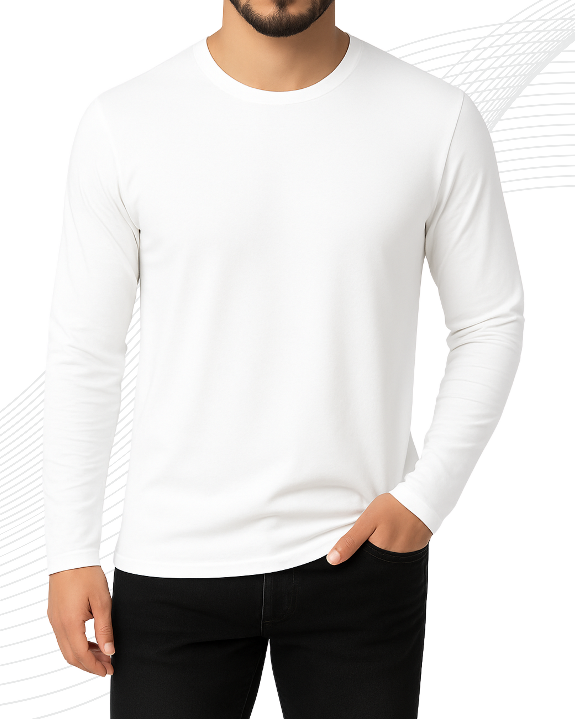 White Men’s Full Sleeves Tee – Jersey Fabric, Classic Fit, Everyday Comfort (3539)